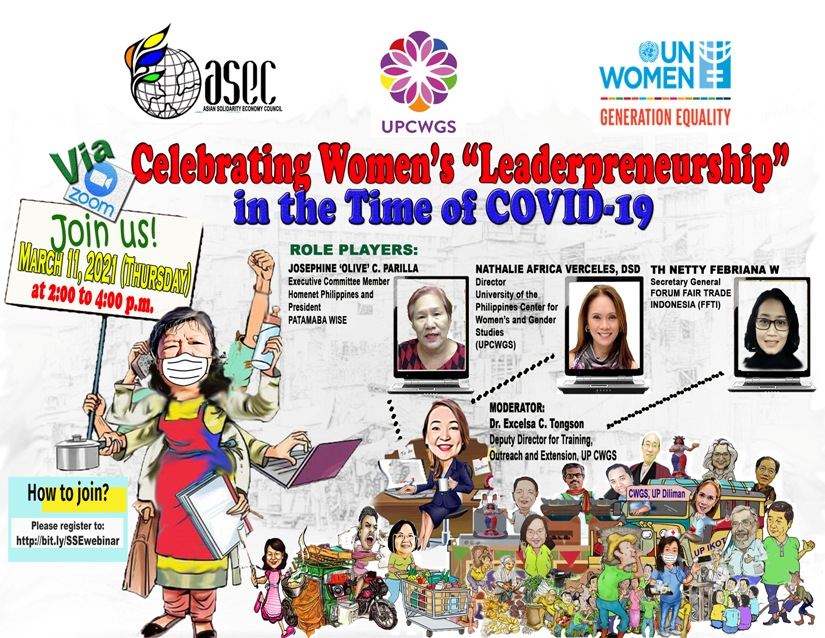 Homenet Philippines, through PATAMABA-WISE president Josephine “Olive” Parilla explained the concept of women’s leadrepreneurship in covid times during a webinar March 11 in celebration of Women’s Month sponsored by the Asian Solidarity Economy Council (ASEC), UN Women Economic Empowerment Program in Asia, and the University of the Philippines Women’s and Gender Studies.